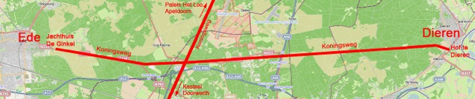 Zo liep een koningsweg van Dieren naar jachthuis de Ginkel bij Ede, door de Onzalige Bossen en de zandverstuivingen bij de tegenwoordige Kop Koningsweg, langs Jacobsput en verder, achter Schaarsbergen langs.