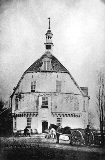 Ook is op veel afbeeldingen van het voorplein een deel van een volière zien.