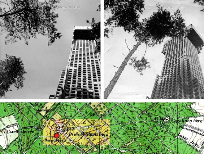 De toren is vlak naast de Prins Willemberg gebouwd in 1953. Op bovenstaande topografische kaart uit 1958 wordt de toren aangeduid als brandtoren, maar het was een militaire uitkijktoren.