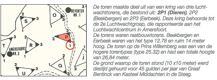 Postcommandant en sleutelhouder van de toren 2P1 (Dieren) was rond 1955 de heer M. de Vries, (toenmalig adres) Zutphensestraatweg 22, Dieren.